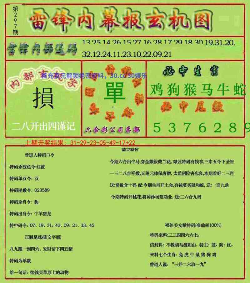 297期:男女两肖男肖+兔鸡』开:狗44准